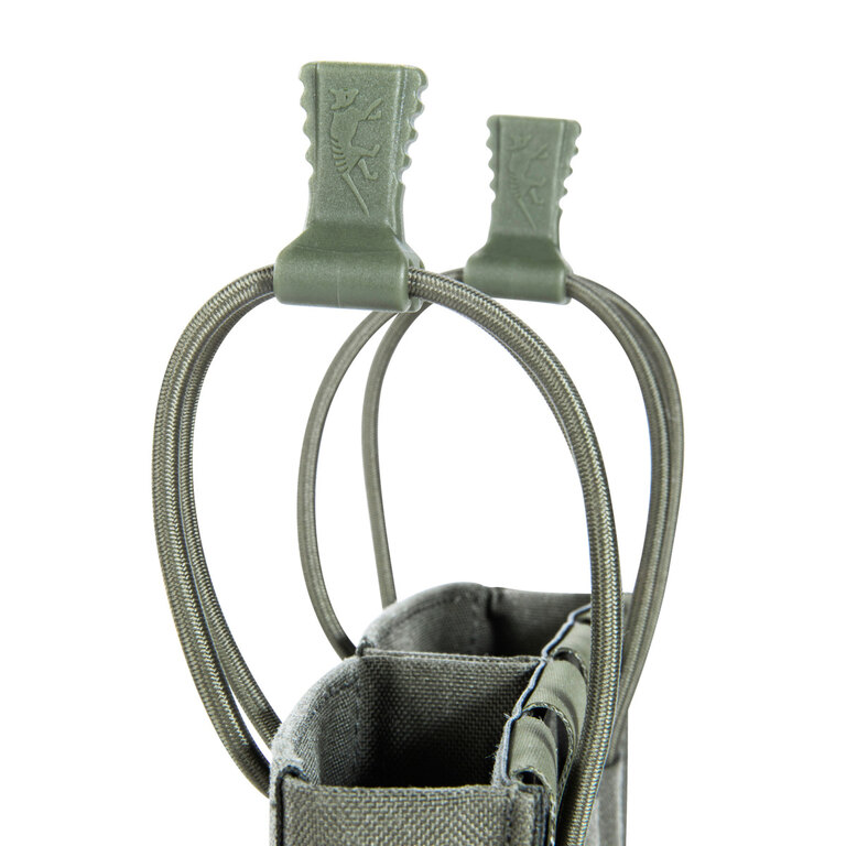 Sumka je navržena tak, aby pevně držela zásobníky na místě a současně umožňovala jejich snadné vytažení jednou rukou. Otevřená konstrukce v kombinaci s elastickými fixačními prvky poskytuje optimální balanc mezi bezpečností a rychlostí přístupu.