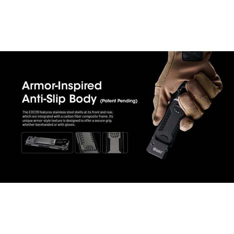 Nitecore EDC29 byla navržena tak, aby odolala nástrahám každodenního používání. Kompaktní tělo a robustní konstrukce zaručují dlouhou životnost. Elegantní design snadno zapadne do vašeho vybavení a zůstane s vámi při každé příležitosti.