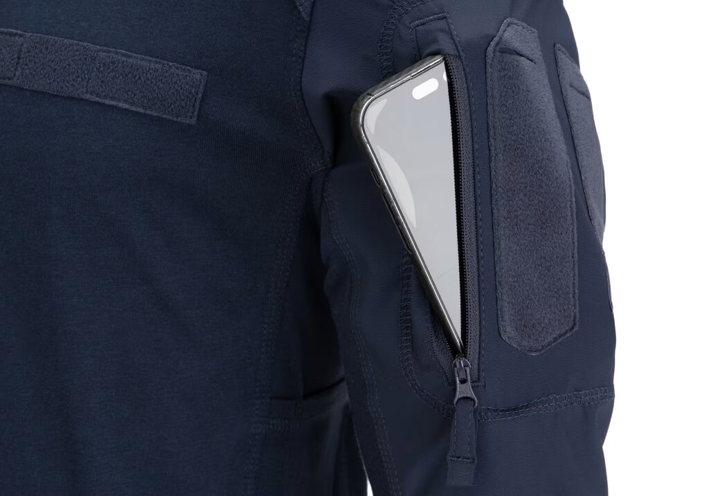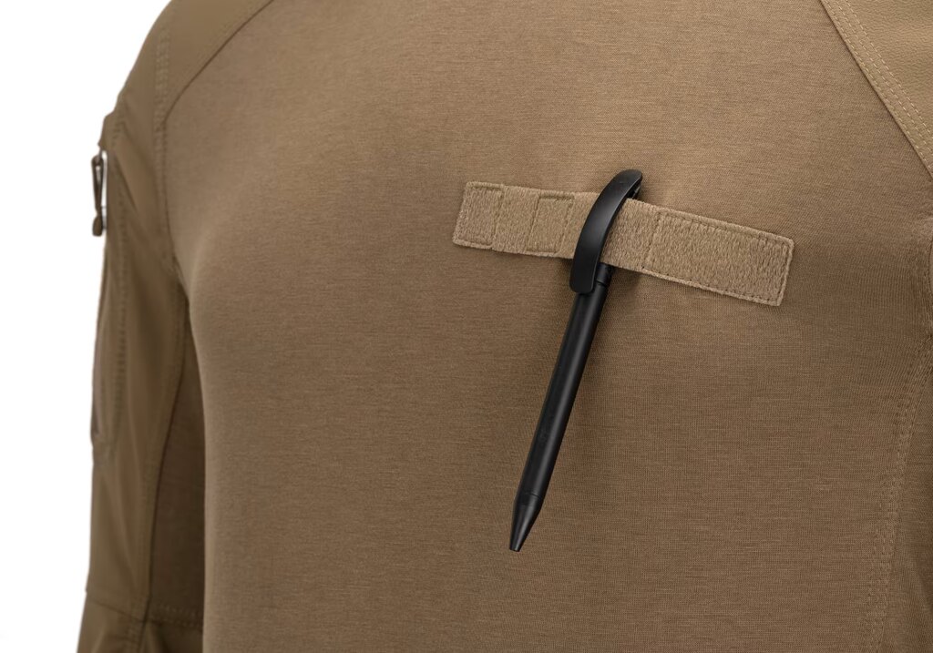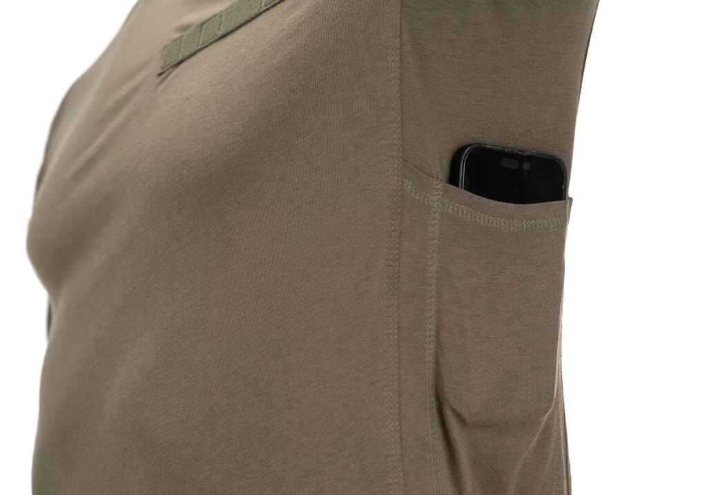Tričko je vybaveno dvěma kapsami na horní části rukávů, uzavíratelnými na zip, s plochou pro nášivky. V bočních panelech se nachází dvě kapsy na smartphone, které umožňují mít telefon vždy po ruce, aniž by překážel při pohybu. Velcro panel na levé straně hrudi slouží k umístění jmenovky nebo hodnostního označení.