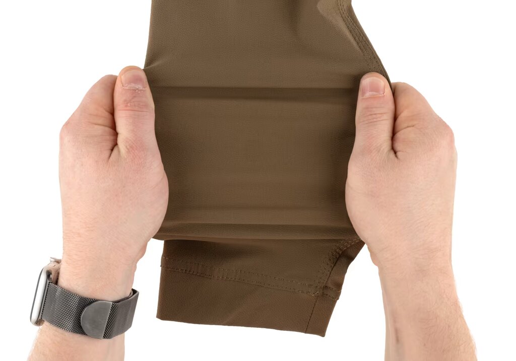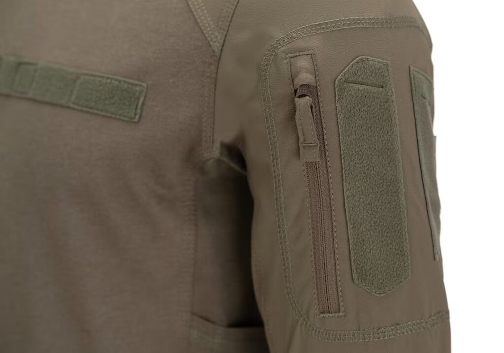 Rukávy jsou vyrobeny z elastické nylonové tkaniny s příměsí elastanu, která poskytuje vysokou odolnost proti oděru a zároveň zachovává pružnost. Tričko je tak vhodné i pro náročnější podmínky, kde dochází ke kontaktu s výstrojí nebo zbraní.