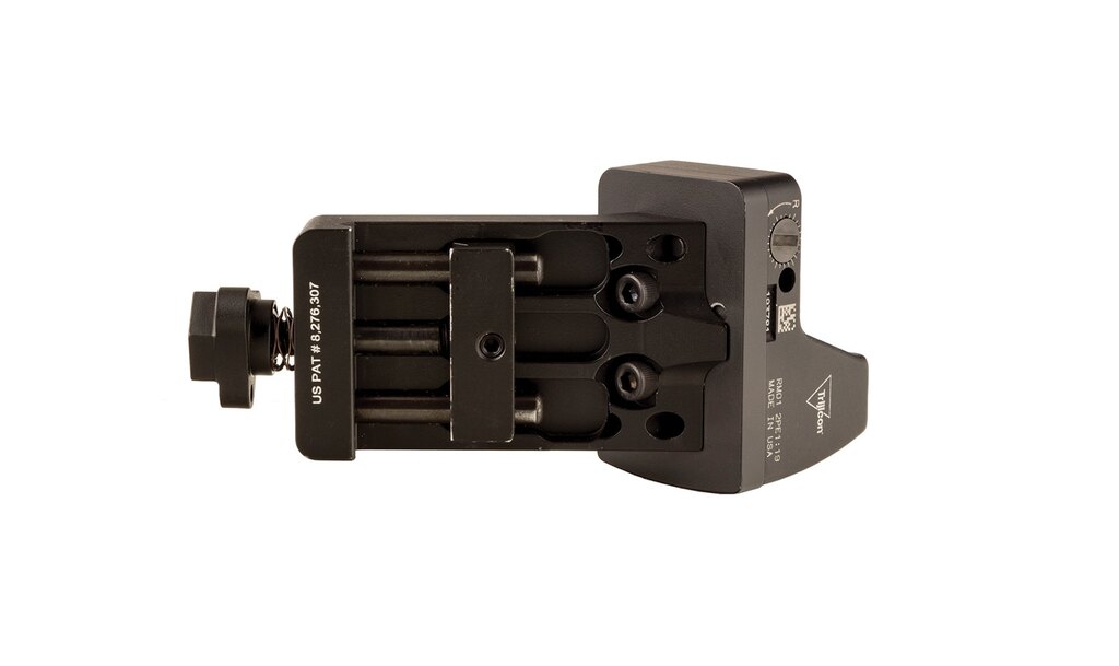 Úhlová montáž RMR Q-LOC Trijicon je navržena pro kolimátory s RMR/SRO footprintem a je určena pro montáž na standardní Picatinny (MIL-STD) lištu. Upevníte ji na lištu, připevníte kolimátor a máte hotovo — bez úprav těla zbraně.