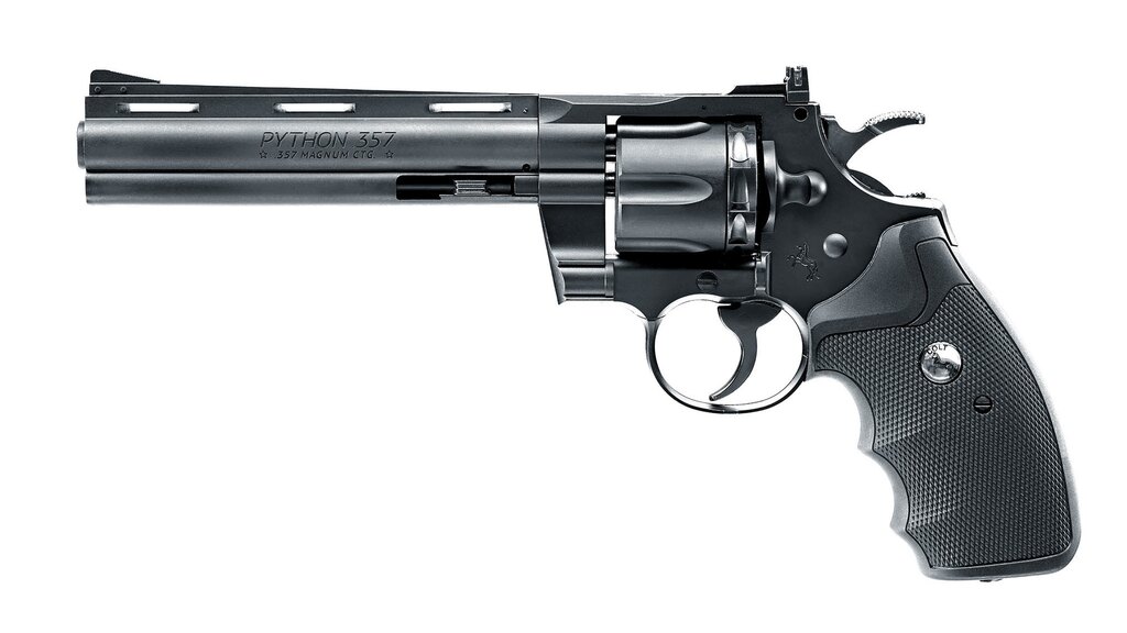 Vzduchový revolver Colt Python 6" / ráže 4,5 mm (.177) Umarex je vzduchová replika legendárního revolveru Colt Python. Pokud si chcete užít vzduchovou střelbu ve velkém stylu, je tento revolver správnou volbou. Manipulace a obsluha zbraně je velice jednoduchá a zbraň je vhodná i pro začínající a rekreační střelce. Zbraň je poháněna CO² bombičkami.