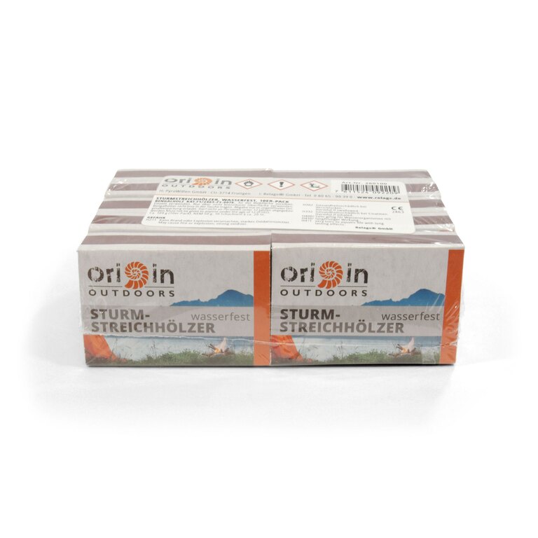 Zápalky Storm Origin Outdoors jsou vybavené prodlouženou sírovou hlavičkou pro stabilnější hoření i ve větru. Zapálené vydrží i při silnějším větru a díky úpravě jsou odolné vůči vlhkosti. Každá krabička obsahuje 20 kusů zápalek, které jsou určené pro venkovní použití.