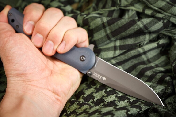 Ergonomická rukojeť je vyrobena z kvalitního a odolného G-10. G-10 je přilnavý / protiskluzový materiál s agresivní texturou, je lehký a přitom velmi pevný a plní také funkci tepelného izolátoru – v ostrém slunci je při uchopení příjemně chladný a při teplotách pod bodem mrazu zase příjemně teplý. Je to velmi odolný materiál – pevný vrstvený laminát vysoké hustoty, vyrobený stejným postupem jako Micarta, tedy lisováním za vysoké teploty, ale je ze skelných vláken namočených v epoxidové pryskyřici a proto je tvrdší a odolnější vůči vodě.